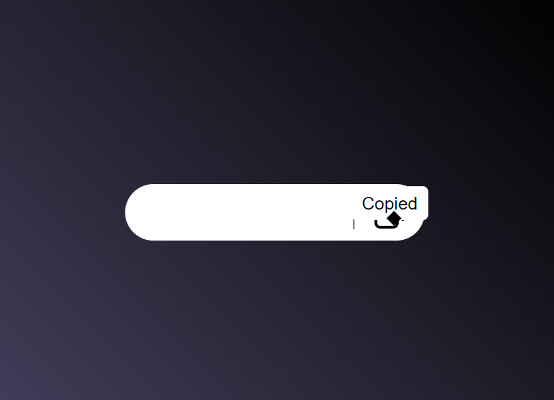Button: We'll add image inside it. By clicking on button we'll run a function to copy the text to clipboard and after that we'll show the message ("copied").